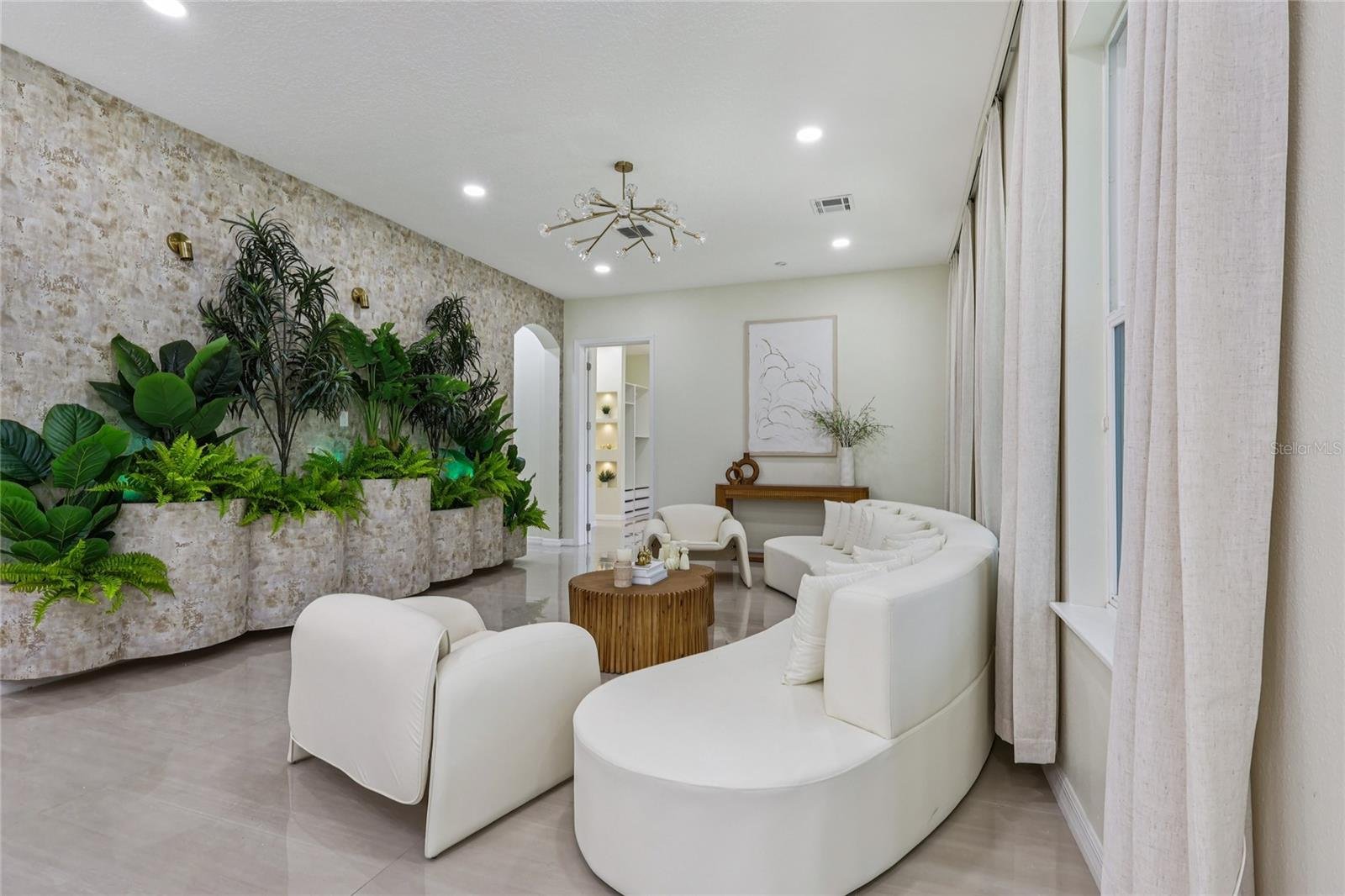 The expansive living room is filled with natural light and offers an ideal setting for both entertaining and everyday living. The first-floor master suite is a private retreat featuring accent niches with focal lighting, generous closet space, and a spa-inspired bath with a freestanding tub, rainfall shower with floor-to-ceiling tile, and a smart bidet toilet. The powder room also includes designer niches and a smart bidet.