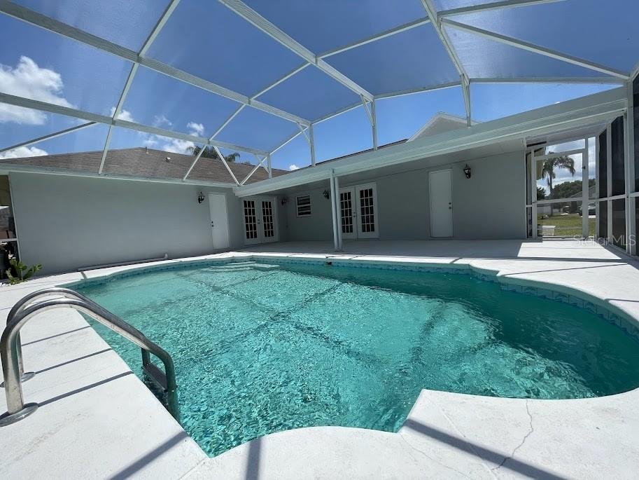 BRAND NEW ROOF MAY 2022, NEW ENTIRE POOL SCREEN, NEW CABINETES, NEW GRANITE COUNTER TOPS ON KITCHEN, NEW BATHROOMS, CERAMIC FLOORS THROUGHOUT THE HOUSE. ETC, ETC, A/C & WATER HEATER 5 Years Old Aprox. This magnificent residence is made up of 4 bedrooms, 2 bathrooms and a beautiful family room, high ceilings, lots of light everywhere, completely renovated, large rooms and spaces with two beautiful and large French doors to lead outside to a large porch that connects to the pool. Each of the bathrooms has a door to the pool and a spectacular view of a large patio for endless front and back garden ideas. On this spacious lot of 15,594 sq ft. This property is located, nestled in a quiet established traditional community close to everything. This house can be your home, or the vacation spot you are waiting for, or it can be the investment you are looking for.
